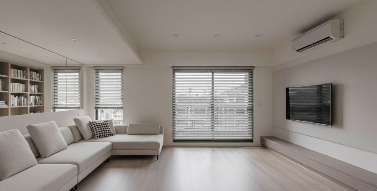 空間語彙以柔和淺色為基底,搭配線性光源、鏡面反射與無壓感的材質節奏,